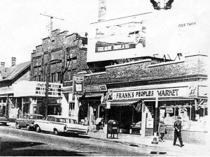 Check out this old picture of what the Stockbridges walls used to be in the “olden days”. It was Shelton’s very first movie theater . . . the building with the stepped roof line (to the left) is the one. Look at those cars . . . HA!