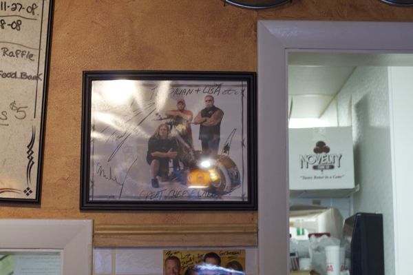 If you live nearby or are in the area (I can’t imagine why you’d be here if you don’t live nearby) you should definitely give this place a try. I think you can order online as well! Look who else even loves their cheesecakes. Not the best lighting as it glares off of the glass of the picture frame but it’s the Tuttles from Orange County Choppers.