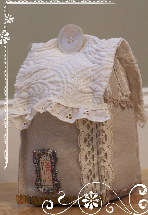 Charlotte Lyons hosted and taught a fabulous class on making felt cottage houses.  Here is one of her gorgeous master pieces.