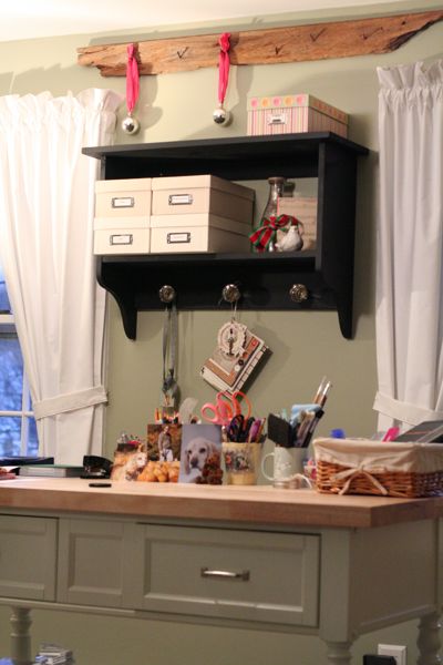 Another view of the newbie shelf and a larger view of the studio. Like my new paint color? It’s called Svelte Sage and is direct from Sherwin Williams. I am totally in love with the color!