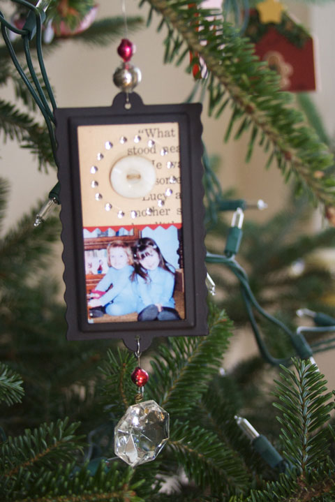 A favorite ornament handmade by mua. It has a picture of my sister and I at our grammies house. Digg the jammies and our black slippers. Quite the fashion statement!
