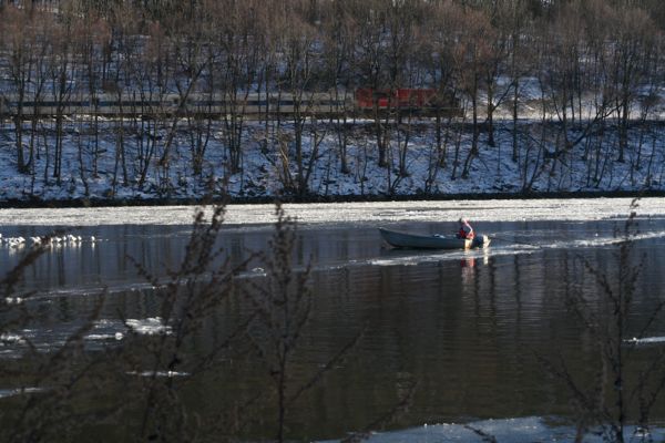 Still @ Marina: Ned in the “Grumpy Old Man Boat” breaking up the ice so it doesn’t destroy the docks. Look, I caught the train going by in the background (wonder if the riders are on their way to NY City? We need to take a day trip soon, LOVE it there!)