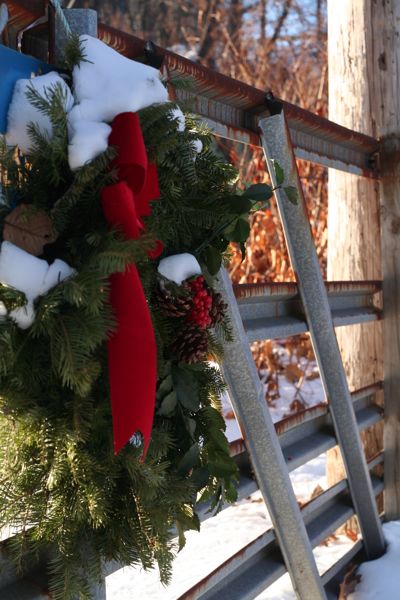 What does one do when stuck on an icy hillside in the snow? Well just pull out the trusty winch and get r done. There was all kinds of man testosterone in the air out there this morning. My female advice and the “raised on a farm advice” was to put some chains on the tractors tires. Chains will always save the day in any icy New England storm. My dad’s farm didn’t function without em.